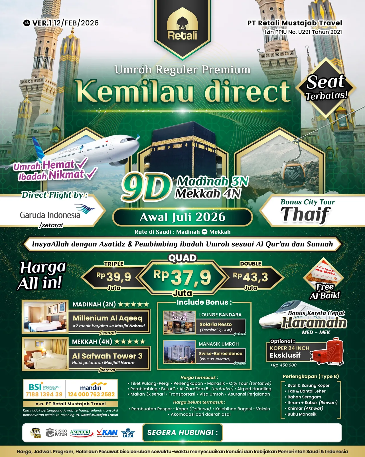 13 Umrah Reguler Premium Kemilau Direct 01 Juli 2026 09 Juli 2026 40