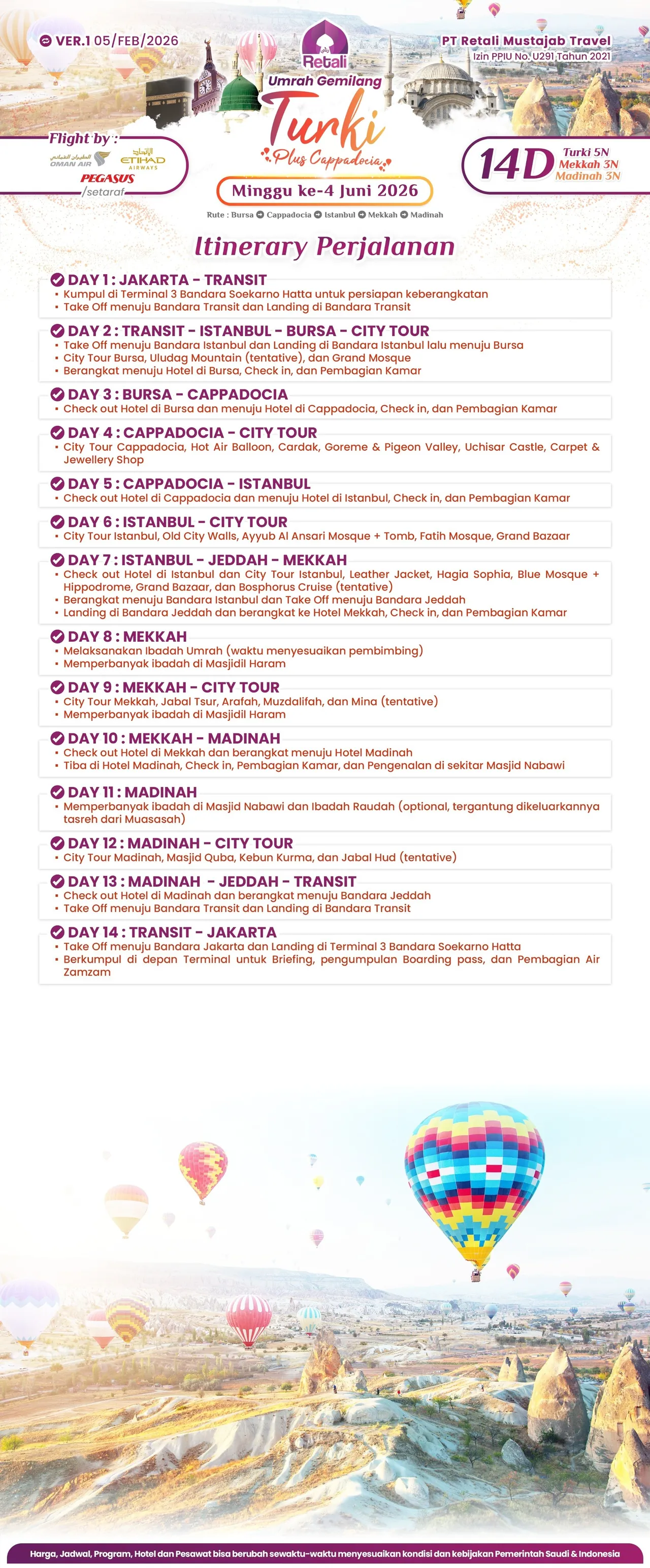 Umrah Gemilang Turki plus Cappadocia +6281210436579 Tampilkan Itinerary