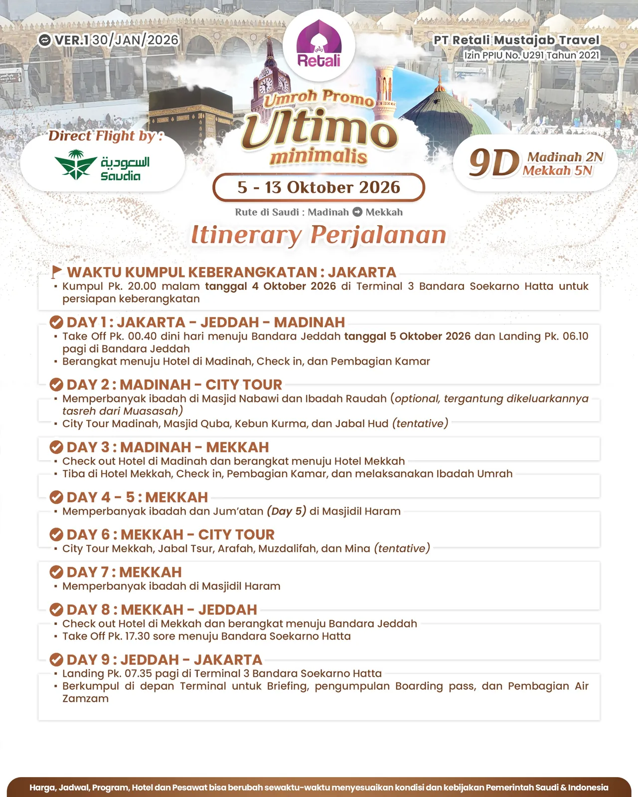 22 Itinerary Umrah Reguler Super Cermat 25 Oktober 2026 02 November 2026 40